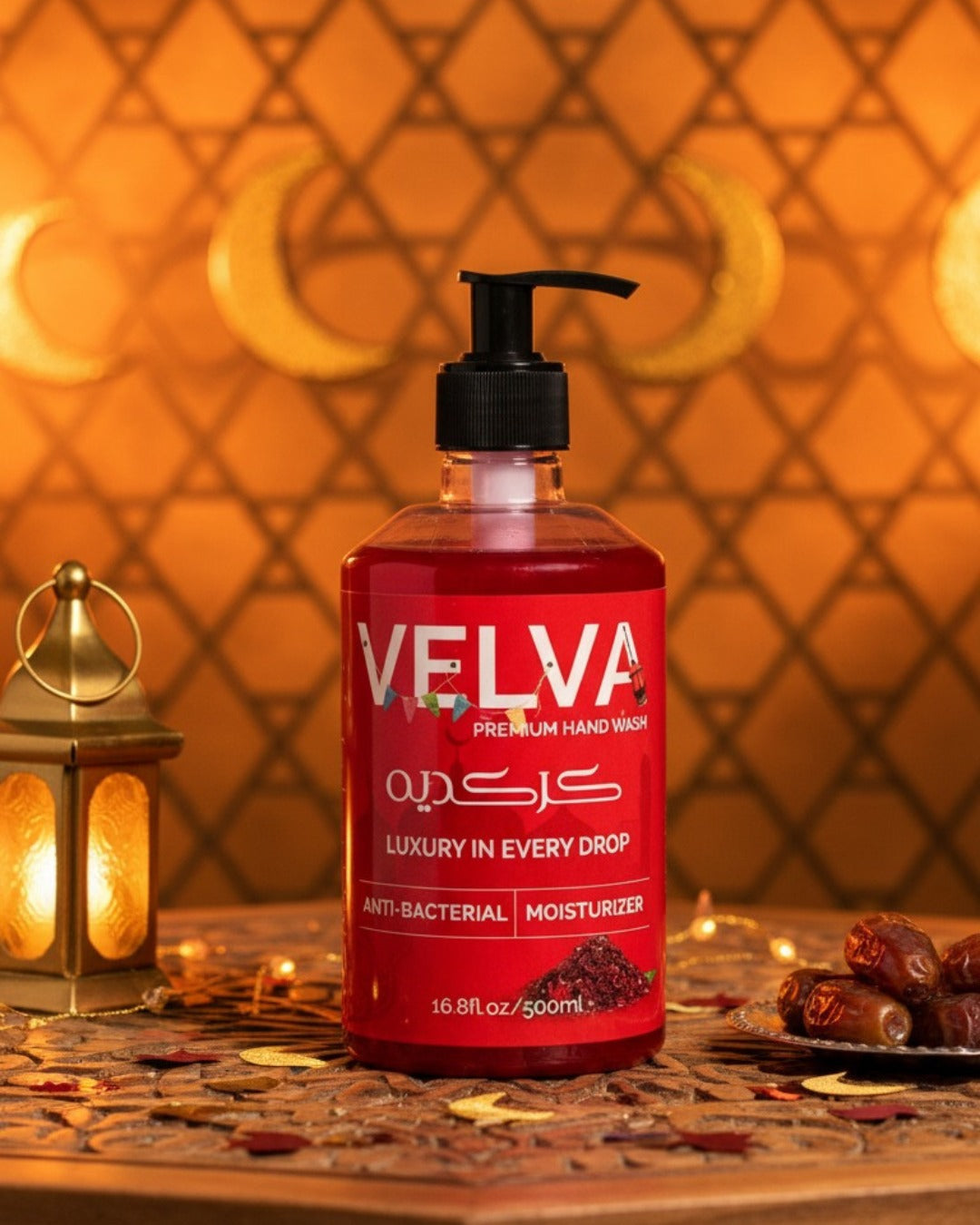 Velva Karkadeh Premium Hand Wash is a Ramadan limited edition inspired by the iconic hibiscus drink. It provides antibacterial cleansing with moisturizing care, making it perfect for everyday use during the holy month.
